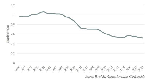 The problem is existing copper mines are running out of ore, and the capital being invested in new mines is far below the level needed.