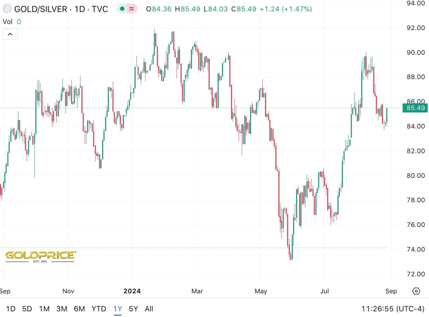 Meanwhile, the gold-silver ratio fell from over 100:1 to just over 64:1. It could easily happen again, especially with the Fed poised to drop rates.