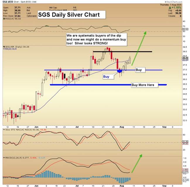 Trump is actively trying to manipulate the Fed’s Board of Governors, to replace Powell with personnel more on board with interest rate cuts. A rate cut in September would certainly be a tailwind for precious metals.