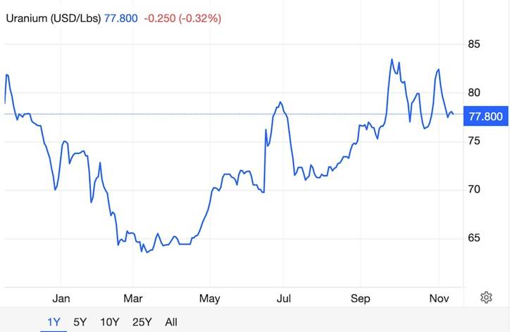 Uranium prices are already reflecting this reality. After bottoming at $64 per pound in March, prices jumped 29% to reach $82 by September. Some recent contracts are locking in prices of $125-130 per pound with $70-75 floor guarantees. Banks like Citi are projecting uranium will hit $110 per pound by 2026.