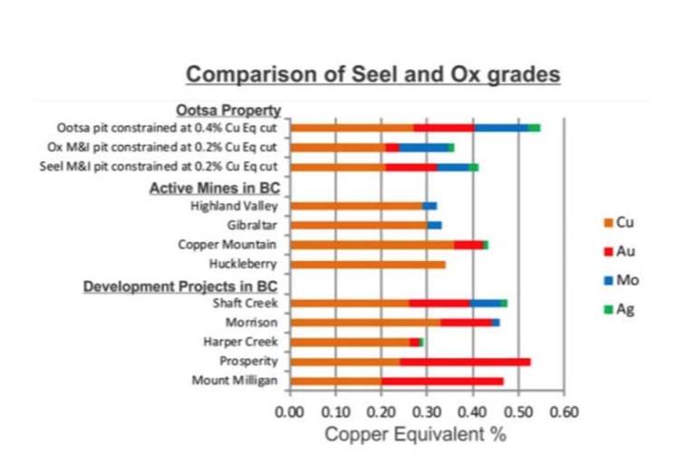 The current PEA has the potential for a 12-year mine that would produce 324 million pounds of copper, 185,000 ounces of gold, 15.8 million pounds molybdenum and 3 million ounces of silver. The report specifies a contract mining and toll milling scenario using Imperial Metals’ mill – where the Ootsa operation would produce at 20,000 tonnes a day, around the same as Huckleberry before it shut down. Historical exploration at Ootsa has seen 144,000 meters drilled, with over 350 holes punched into the low-lying topography. Three deposits – Ox, East Seel and West Seel – have been discovered.