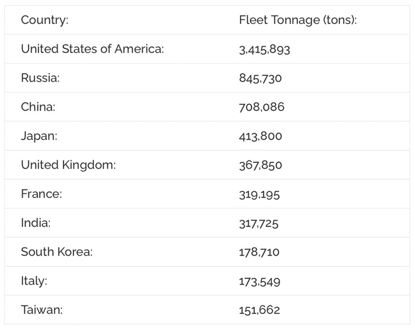 According to Migflug.com, for a long time the Russian navy was as big as the US one, however the annexation of Crimea provided Russia with 51 more ships, making it larger than America’s. But, the Russian navy is specialized to be used in canals and small seas (corvettes, for example), and has a much smaller battle fleet tonnage. As the table below shows, Russia’s fleet tonnage is four times smaller than America’s, which is bigger than the next 13 navies combined!