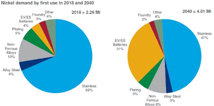 Class 2 nickel is primarily used to make stainless steel, which accounts for two-thirds of global nickel demand. Sulfide deposits provide ore for Class 1 nickel users which includes battery manufacturers. These battery-cos purchase nickel sulfate, derived from high-grade nickel sulfide deposits.