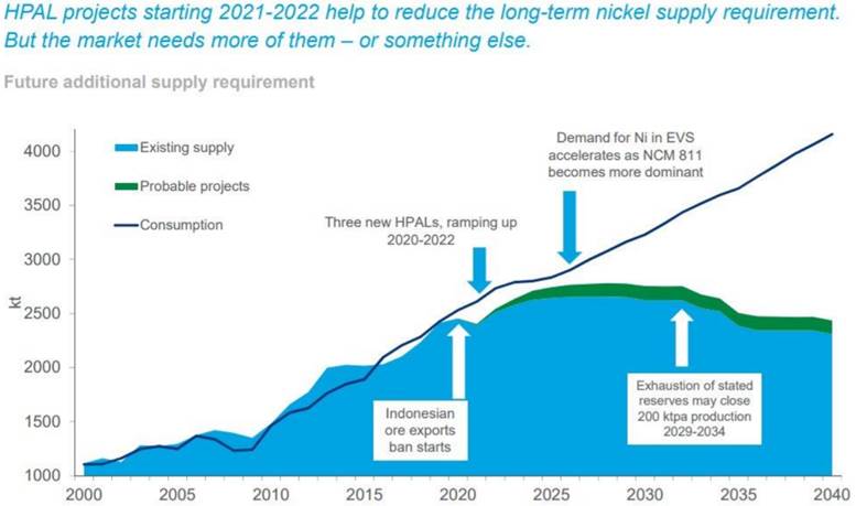 However, large-scale sulfide deposits are extremely rare. Existing sulfide mines are becoming depleted, with precious few to replace them. It’s important to note that less than half of the world’s nickel is suitable for the biggest growth market – EV batteries.