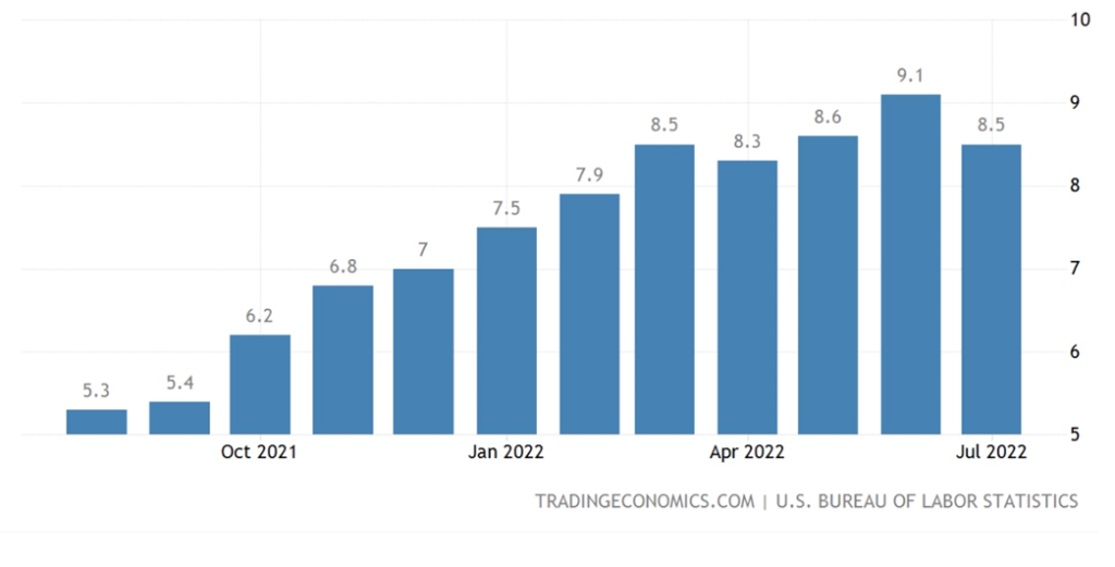 The Fed wants to get inflation down from 8.5% to 2%. That’s a huge gap. Also consider that, even if inflation slows, as it appears to be currently, does not mean that consumers get their spending power back. Like compound interest in reverse, inflation is cumulative. (e.g. July’s 8.5% inflation is on top of June’s 9.1%, which is on top of May’s 8.6%, etc.)