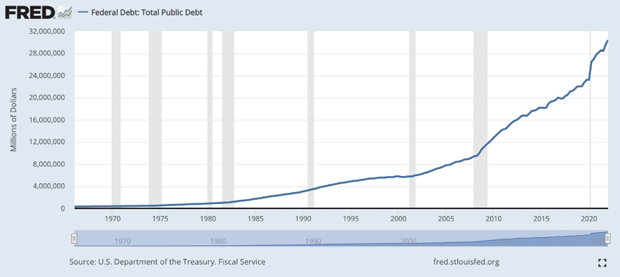 Today, the US federal debt has gone parabolic and is well over $30 trillion.