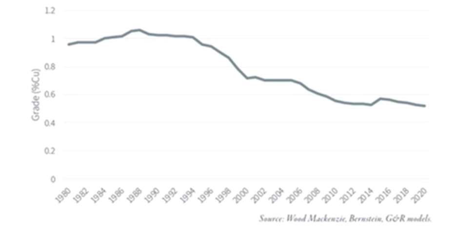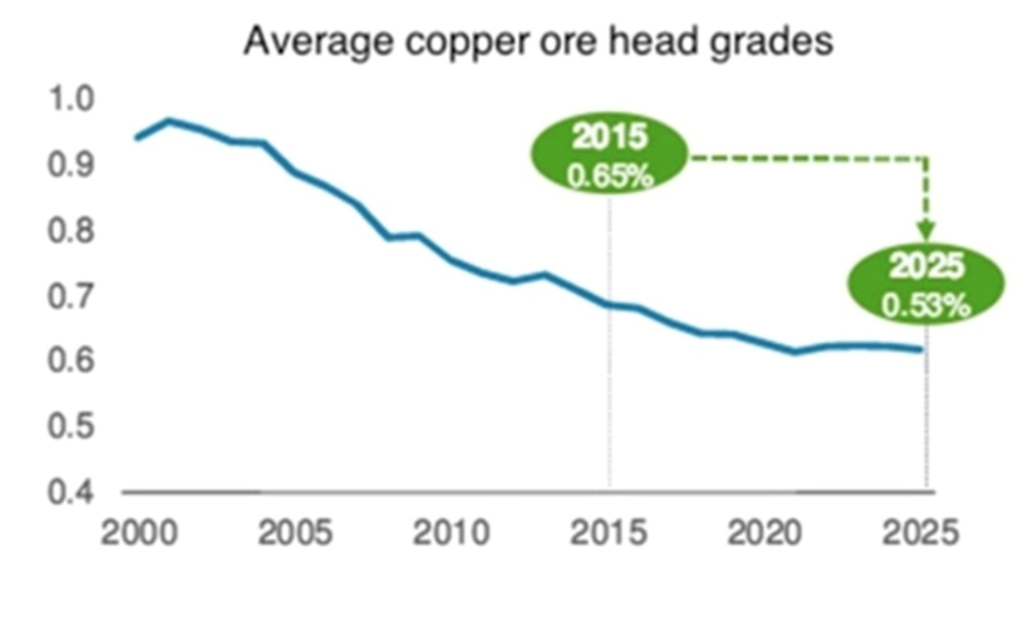 Why are major mining companies so intent on securing new supplies of copper? Quite simply, they are running out of ore.
