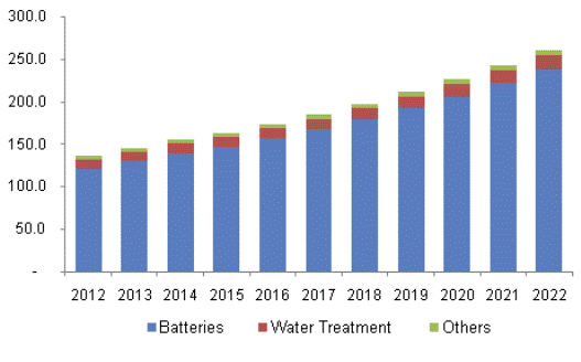 Another application for EMD is in electrodes for water treatment plants as it separates out the waste from the water. A growing water treatment industry, particularly in Asia Pacific, is anticipated to drive demand over the foreseeable future.