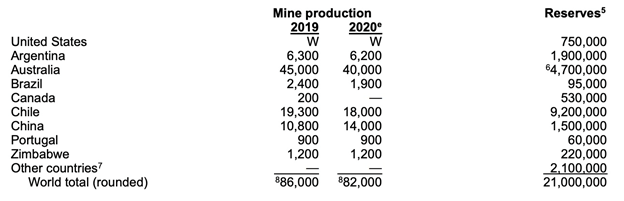 For example, in 2020 (and earlier) the only lithium production in the United States was from Albemarle’s Silver Peak brine operation in Nevada. While the actual amount was withheld by the company, it certainly comes nowhere close to the top three producers, Australia (40,000 tonnes), Chile (18,000t) and China (14,000t). As for current identified lithium resources, the USGS notes these have increased substantially due to continuing exploration, but out of the 86-million-ton total, only 7.9Mt has been found in the US, and 2.9Mt in Canada.