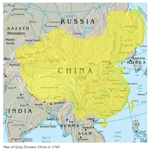 A knowledge of history is important here. Hundreds of year ago China was the undisputed ruler of North Asia. Chinese history is a series of dynasties. The last dynasty was the Qing, or Manchu; the Qing held power for 268 years, from 1644 to 1912. At the peak of its empire the Qing controlled 13 million square kilometers of territory including parts of modern-day Vietnam, Myanmar, Tibet, India and North Korea. Among its major achievements were an expansion of foreign trade, the creation of vast encyclopedias (the Imperial Encyclopaedia written between 1700 and 1725 reportedly contained 10,000 volumes), a large body of literature, development of the Peking Opera, and advances in painting, porcelain and printing.
