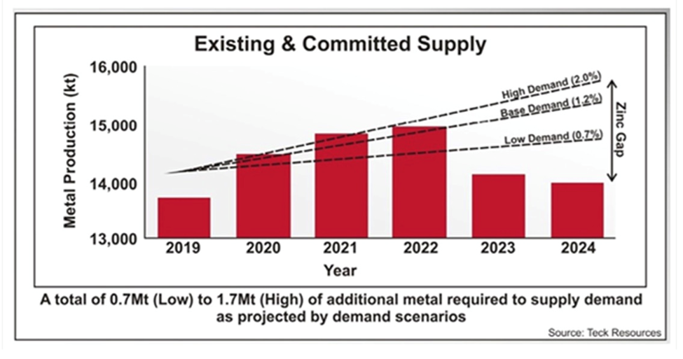 Over the years, some very large zinc mines have been depleted and shut down. These include MMG’s Century mine, which used to supply 4% of the world’s zinc, and Glencore’s Brunswick and Perseverance mines in Canada.
