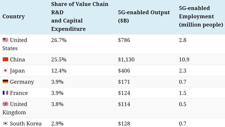 “Developing 5G networks and implementing them into the many industries of the global economy is a massive undertaking, and just seven countries are expected to account for 79% of all 5G-related investment.
