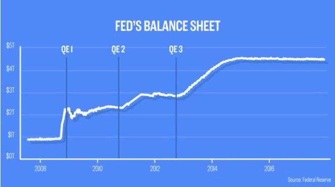 Between 2008 and 2015 the Fed bought trillions of dollars worth of T-bills and mortgage-backed securities, keeping interest rates near zero percent, but making the US debt balloon from $900 billion to $4.5 trillion.