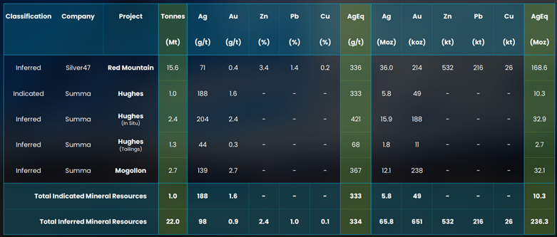There’s work that’s been done to date and there was some past production of high-grade gold and silver up until World War II. So, Summa published an inferred resource earlier this year of 32,000,000 oz of silver -equivalent at 367 grams per tonne, so good grade, good metallurgical recoveries – 97% for silver, 98% for gold.