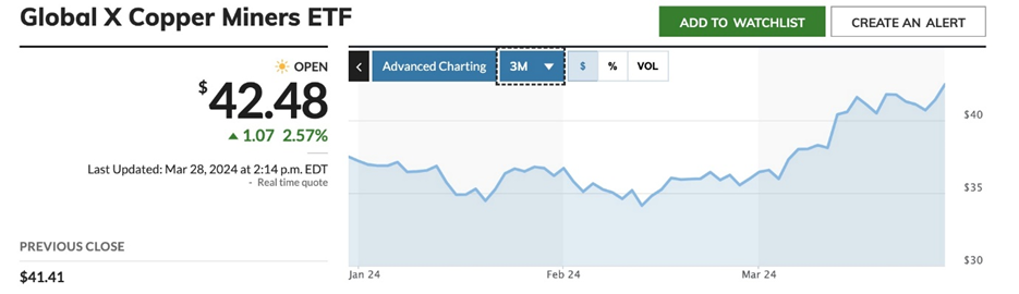 For the first two weeks of March, copper rallied 4.1%, hitting its highest level since April 2023.
