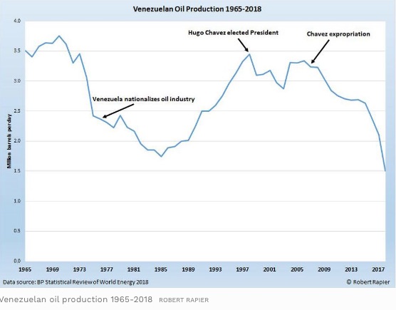 According to Forbes, Venezuelan oil production has slumped to 1.5 million barrels a day, just over half of what is was before 2006.