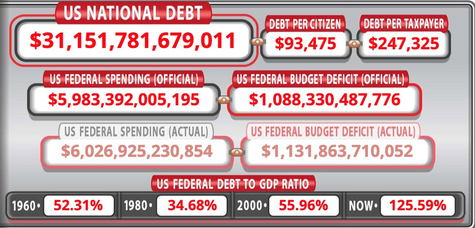 Each interest rate rise means the federal government must spend more on interest. That increase is reflected in the annual budget deficit, which keeps getting added to the national debt, now standing at a gob-smacking $31.1 trillion.