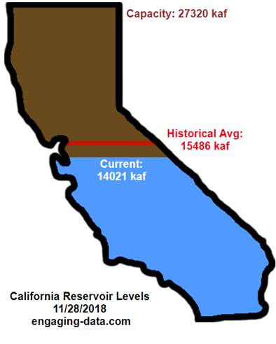 Over-use of underground water supplies in California’s Central Valley has resulted in the loss of almost 50% of the storage capacity in all of California’s reservoirs.