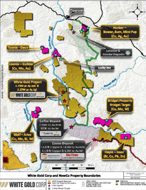 White Gold Corp’s CEO, David D’Onofrio commented, “The timing of this proposed spin-out aligns exceptionally well with the strong and growing support we are seeing from both the Yukon and federal governments for the responsible development of critical minerals. Recent initiatives focused on advancing critical mineral exploration, improving infrastructure, streamlining permitting, and strengthening collaboration across Western and Northern Canada reinforce Yukon’s position as a globally desirable jurisdiction for discovery and development. By creating a dedicated critical minerals company, we believe we are positioning these assets to directly benefit from this supportive policy environment, while providing shareholders with focused exposure to commodities that are increasingly central to Canada’s long-term economic and supply chain strategies.”