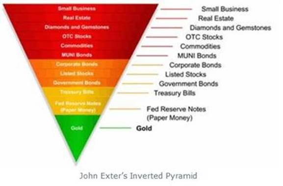 Exter is known for creating Exter’s Pyramid – useful for visualizing the organization of asset classes in terms of risk and size.