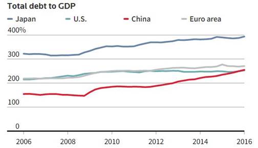 Moody’s Investors Service Inc. reports that US$3.9 trillion worth of global private debt (the combination of business debt and household debt) was issued in 2016, a record high.