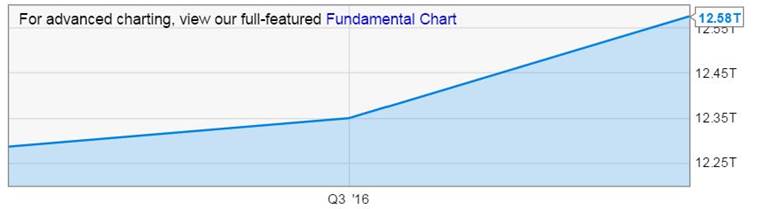 In January of 2017 the Institute for International Finance (IIF) reported global debt levels – total world debt – rose to more than 325 percent of the world’s annual gross domestic product in 2016. Global debt had risen more than $11 trillion in the first nine months of 2016 to more than $217 trillion with general government debt accounting for almost half of the increase.