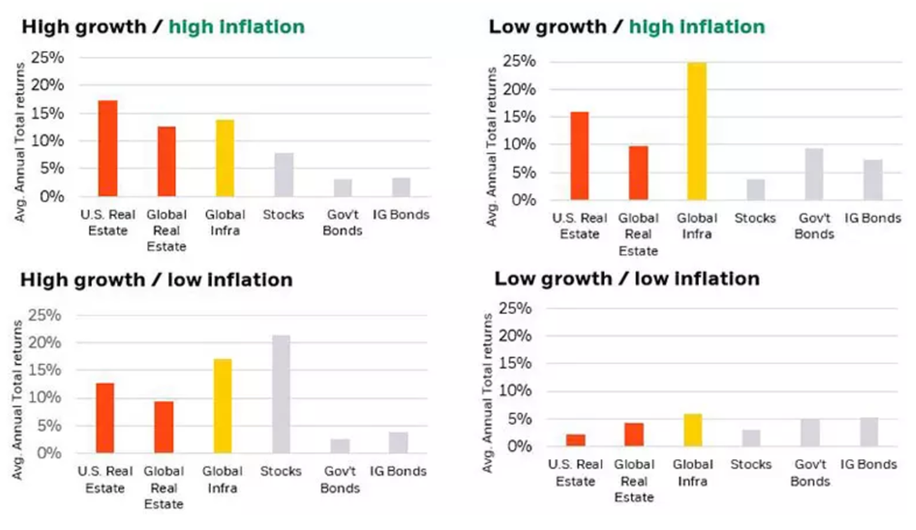 Inflation, changes in currency values, and other macro-economic factors affect real assets less than financial assets. This makes them good investments during periods of high inflation, like currently. In addition, cash flow from real assets like real estate can provide predictable income streams for investors.