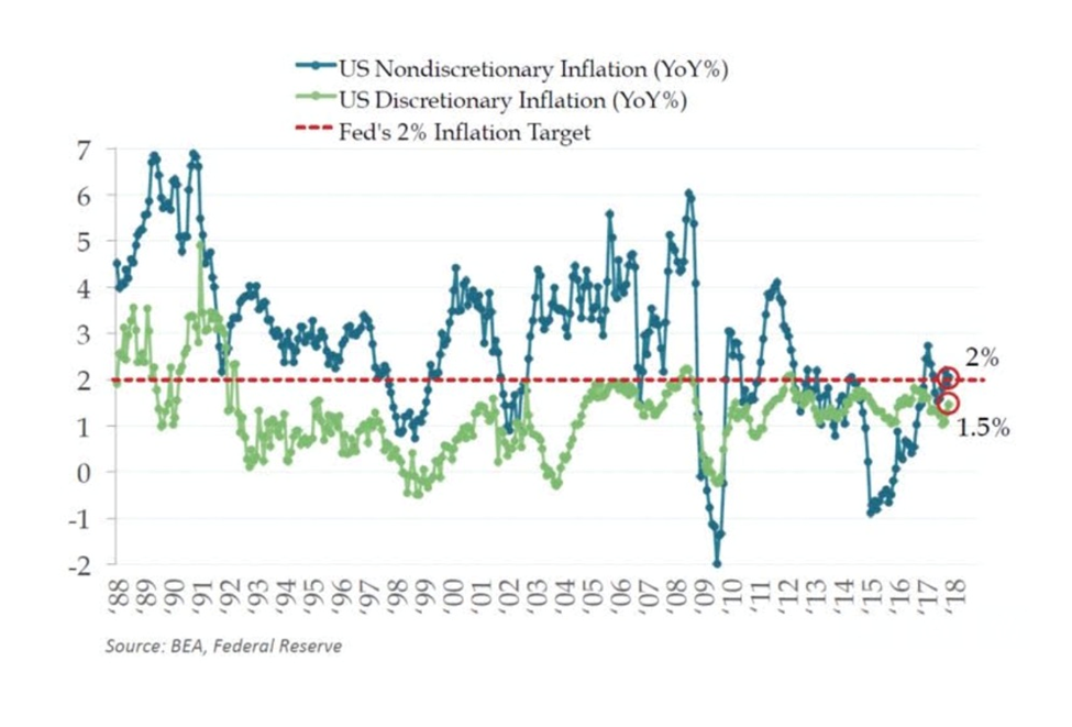 The fact that the central bank’s preferred measure of inflation creates a discernible gap between the rate of price increases for necessities, and the one for discretionary purchases, puts the Federal Reserve’s tightening path at risk of veering off course, maintains Danielle DiMartino Booth, a former adviser to the president of the Dallas Fed.