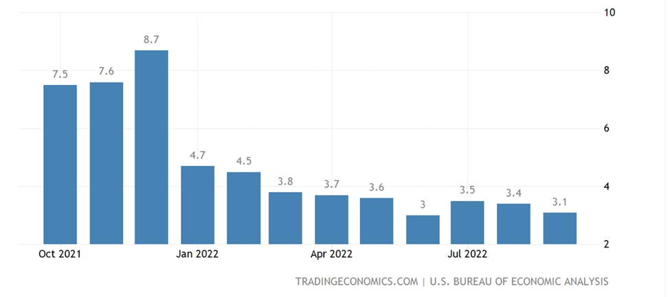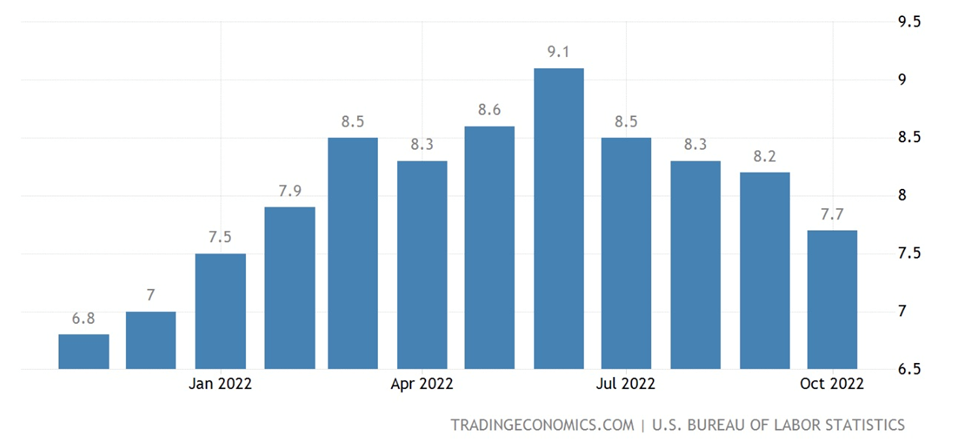 Take a look at the graph below. It shows US inflation peaking in June at 9.1%, then dropping every month since. Is this not proof that interest rate hikes work in bringing down inflation?