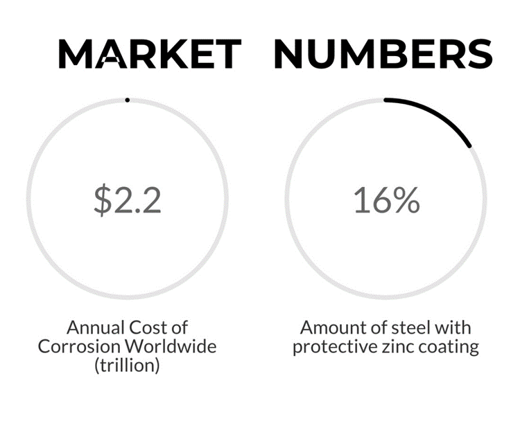 The IZA also says the annual cost of corrosion worldwide is USD$2.2 trillion, representing over 3% of global GDP. The World Corrosion Organization estimates around $400 billion can be saved by applying corrosion control technologies like zinc coatings. Zinc is so important in this role, states IZA, that the coating market represents nearly 60% of total zinc consumption each year. About 16% of steel has a protective zinc coating.
