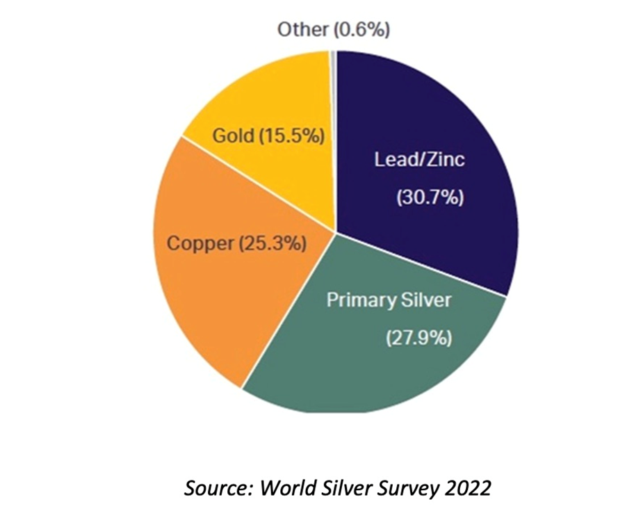 Only around 30% of annual silver supply comes from primary silver mines, with over two-thirds sourced from polymetallic ore deposits, including lead/zinc operations, copper mines and gold mines. As the pie chart below shows, most silver (30.7%) is produced from lead-zinc.