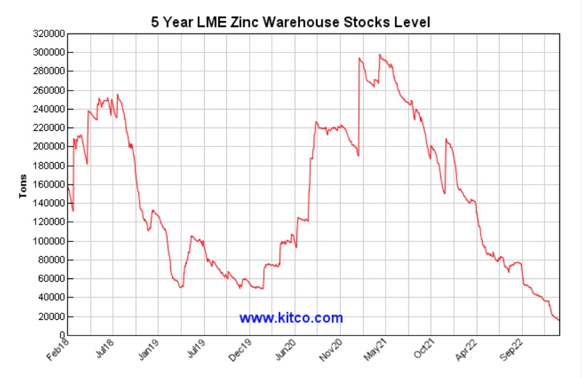 The International Lead and Zinc Study Group (ILZSG) forecasts the zinc market to be in a 297,000 tonnes deficit in 2022 and a 150,000 tonnes deficit in 2023.