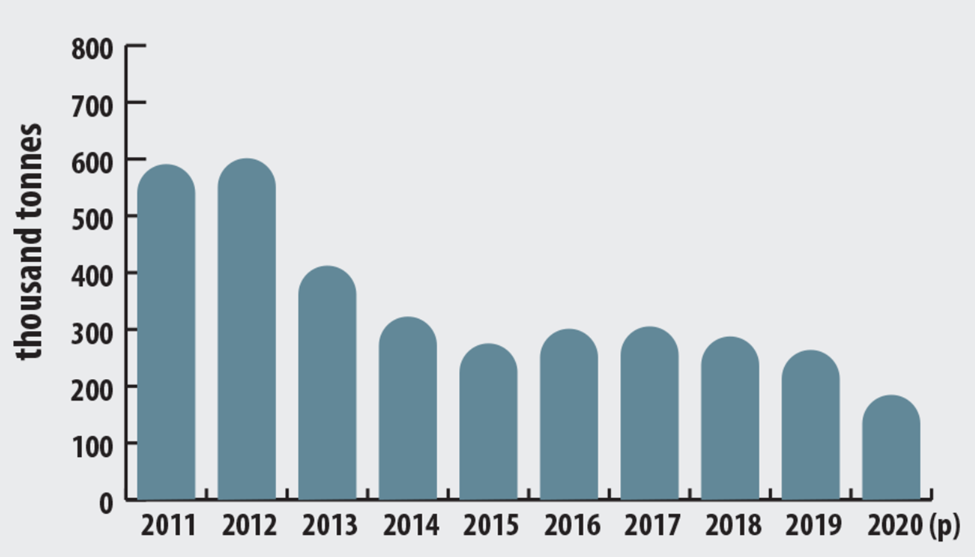 Canadian output was also expected to fall substantially, mainly as a result of the suspension of activities at Trevali’s Caribou operation in New Brunswick, and permanent closures of the Matagami (Quebec) and 777 (Manitoba) mines due to reserves depletion. Hudbay’s Flin Flon, Manitoba smelter, which operated for more than 25 years, was also shuttered in September.